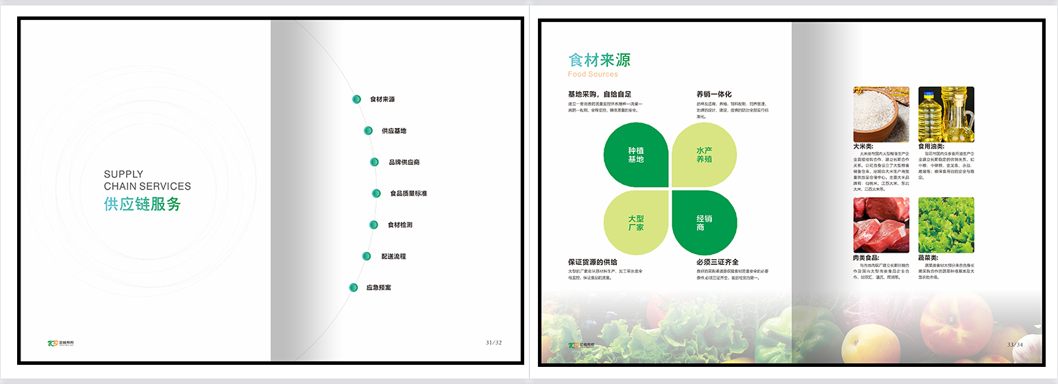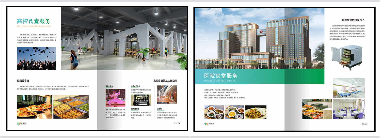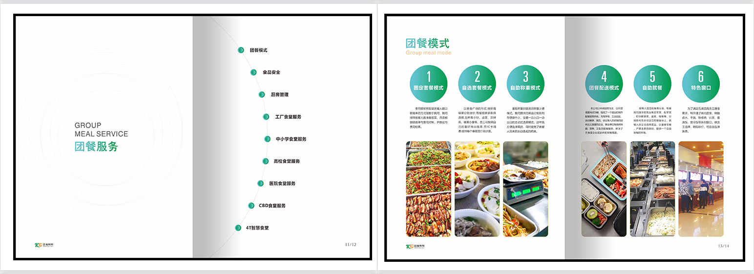 团餐画册,团膳画册,餐饮画册,绿色册子,食品安全,供应商管理,食材配送,食材配送,​​​食堂承包,供餐模式,标准套餐,自选供餐,量贩称重供餐,特色窗口,标准餐谱,餐厨升级,增值服务,应急管理。