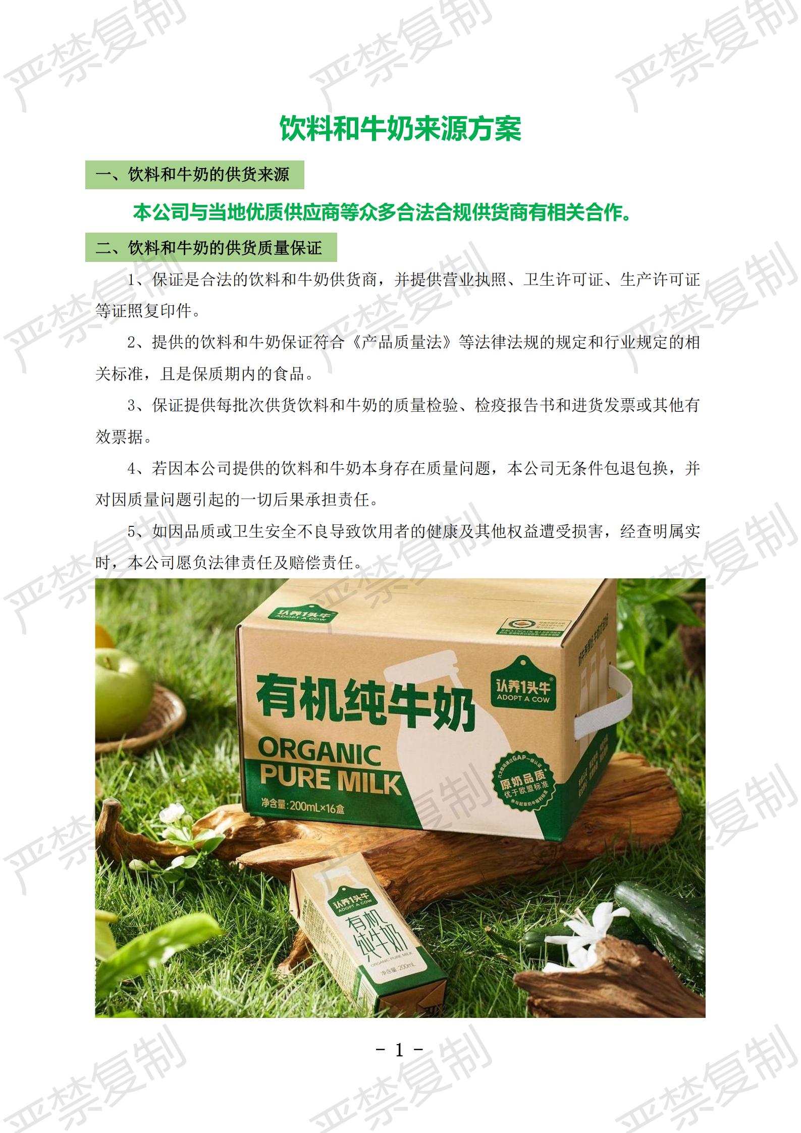 饮料和牛奶的供货来源;饮料和牛奶的供货质量保证